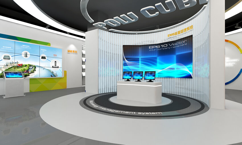 展廳沿用國際化設(shè)計(jì)理念,視覺體系融合了陽光電源公司和三星集團(tuán)兩種VI,突出“科技”的運(yùn)用和表現(xiàn),展示內(nèi)容數(shù)字化,注重參觀者的體驗(yàn)感。
