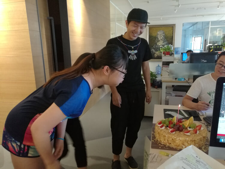 每月月底都會舉辦一次當月生日人員的祝福環(huán)節(jié),集體活動時給員工集體攝影留念,公司統(tǒng)一定制有紀念意義的生日蛋糕作為生日禮物!