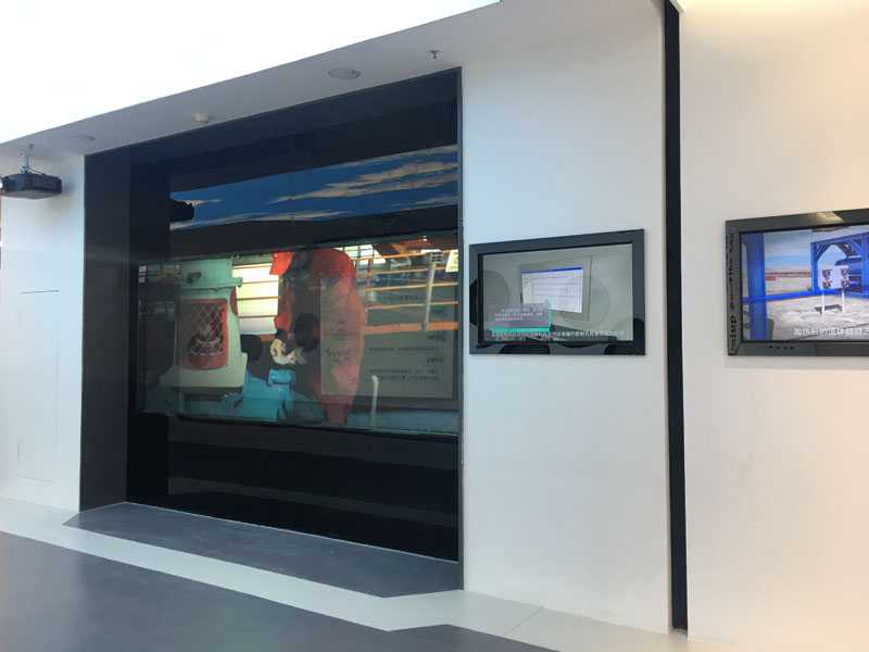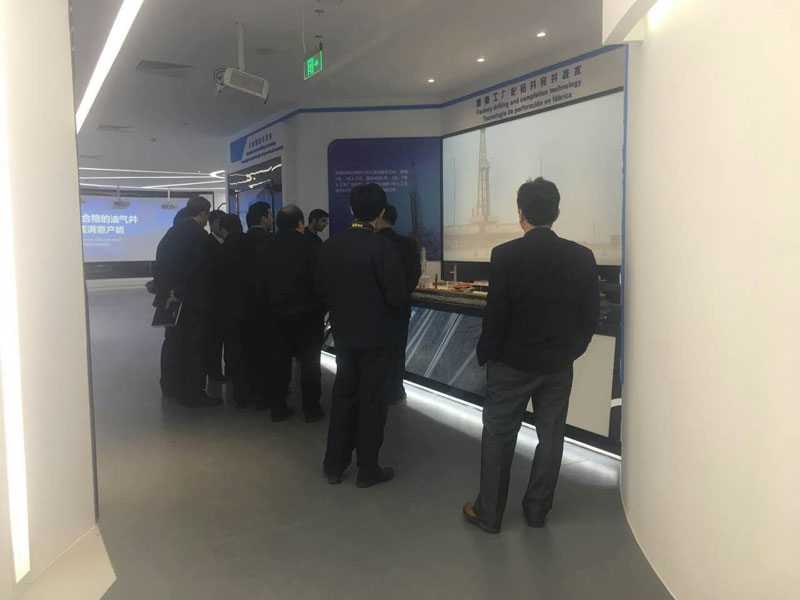天津渤海鉆探展廳位于天津?yàn)I海新區(qū),布展面積約700平米。全體工作人員經(jīng)過5個(gè)月的全力以赴、精心施工、周密安排,確保展廳順利按時(shí)開館。開館當(dāng)天迎來了第一批參觀人員——伊朗商務(wù)考察團(tuán)。展廳舒服的空間設(shè)計(jì),展示手段的先進(jìn)性以及展示內(nèi)容的數(shù)字化的生動(dòng)直觀性贏得了考察團(tuán)的一致好評(píng),促進(jìn)了洽商雙方的合作意向進(jìn)一步加深。