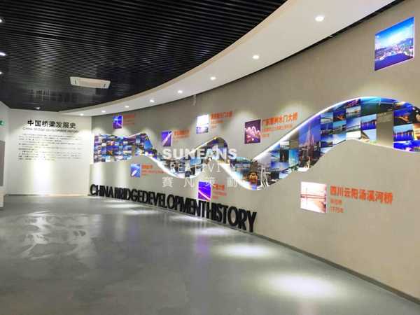 壩陵河大橋為了展現(xiàn)壩陵河大橋地理上建造的難度,將海拔線,坐標(biāo)點按比例放于宣教館內(nèi)。