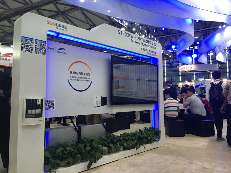 北京賽凡承接的陽光電源集團(tuán)展臺設(shè)計(jì)為全館面積比較大的展位,整體展臺為雙層鋼構(gòu)。賽凡精選材質(zhì),嚴(yán)格把控工藝流程,有效管理施工環(huán)節(jié),在只有2天半的搭建時間里保質(zhì)、保量、按時完成全部工程。展會期間獲得客戶、主辦方、場館方以及觀眾一致好評。